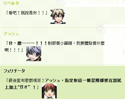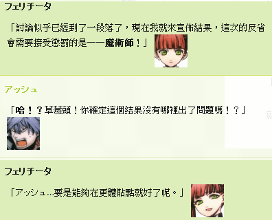 最終結果會由菲麗琪塔(フェリチータ)表決要接受懲罰的角色與懲罰項目。